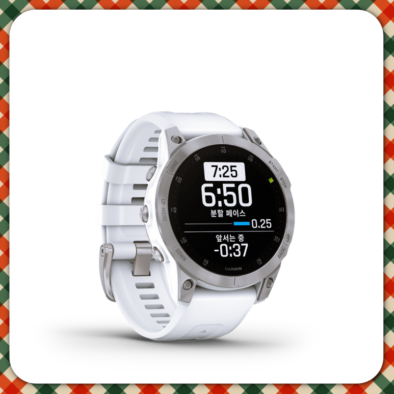 또한 가민의 프리미엄 GPS 스마트워치 이픽스는 가민 아웃도어 라인업 중 최초로 아몰레드 디스플레이를 탑재하였으며, 1.3인치 스크래치 방지에 뛰어난 코닝 고릴라 글라스 DX 및 사파이어 크리스탈 렌즈와 티타늄 베젤을 적용한 에픽스는 뛰어난 가독성과 내구성을 모두 갖춘 제품입니다.