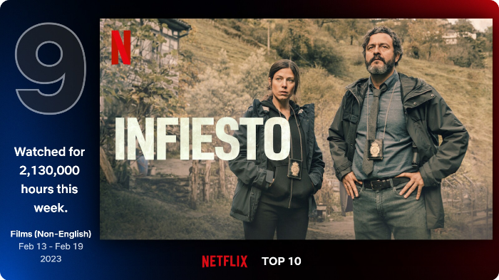 지난 주 2위였던 인피에스토는 주간 시청시간 213만 시간으로 9위로 떨어졌다. 3개월 동안 실종됐지만 범인을 잡지 못하는 납치된 소녀를 두 명의 형사가 쫓는 스릴러다.