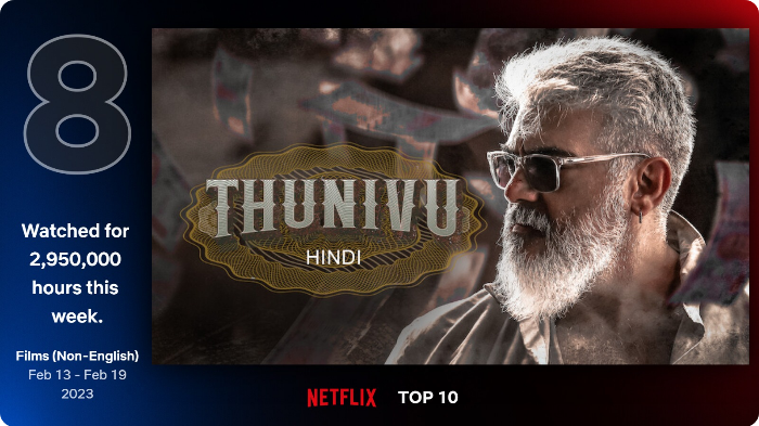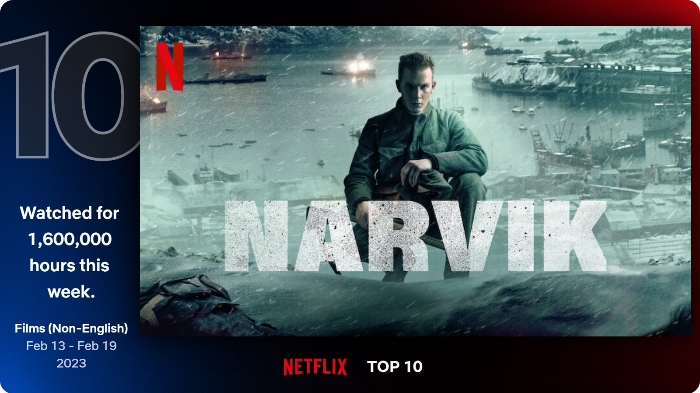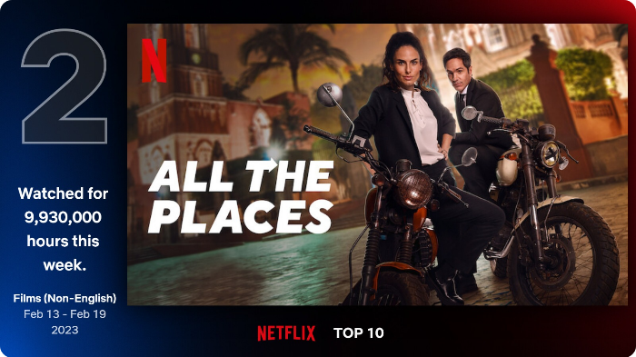 지난주 순위에 포함되지 않은 1276만 시간의 시청시간을 기록하며 비영어권 영화 1위에 올랐다.