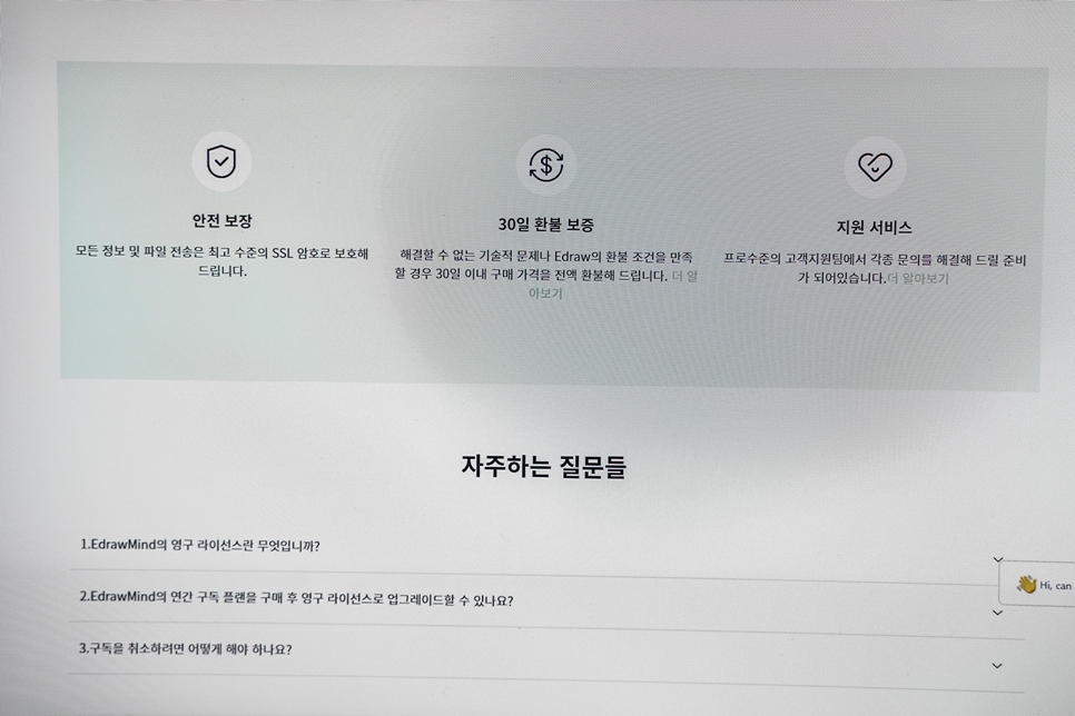 그 밖에도 안전 보장, 30일 환불 보증, 지원 서비스 등의 내용이 들어 있습니다.