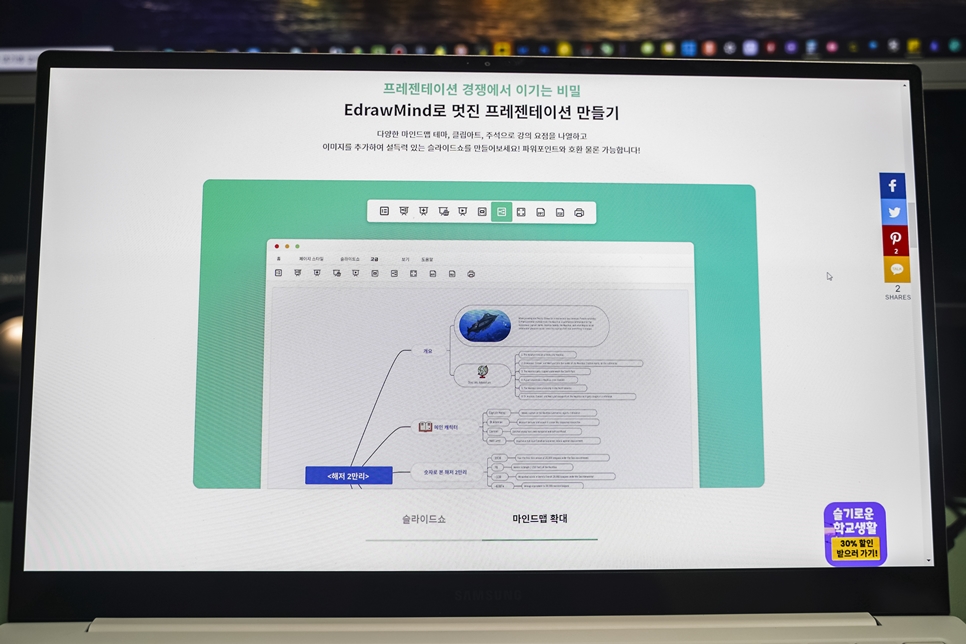 위와 같이 Edraw Mind에서 멋진 프레젠테이션을 완성할 수도 있습니다. 이걸 완성한 다음에 슬라이드 쇼로 만들면 PPT로는 굉장히 많은 작업이 들 수 있는데 정말 쉽게 할 수 있었습니다. 대학생 시절에 이런 도구들을 알았더라면 얼마나 좋았을까.