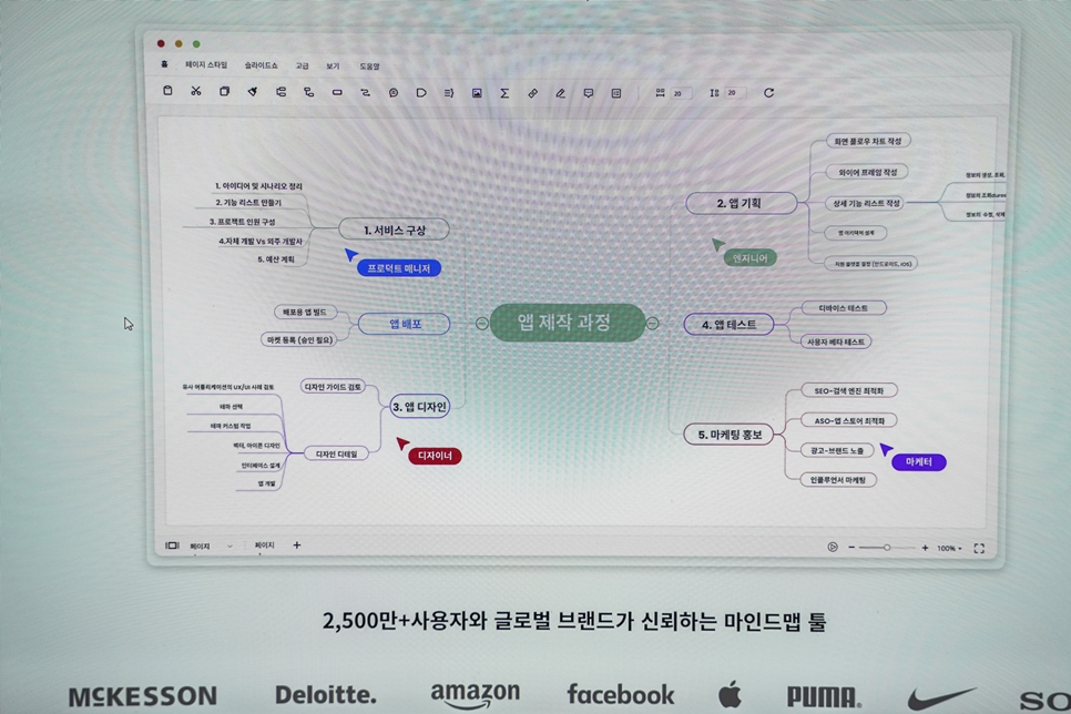 다양한 OS를 지원하여 실시간 협업이 가능하고 빠른 마인드 맵 형성이 가능하다는 점, 스마트 포맷으로 완성된 마인드 맵을 만지고 조절할 때마다 크기를 조절하거나 글자 크기를 변경하지 않습니다.
