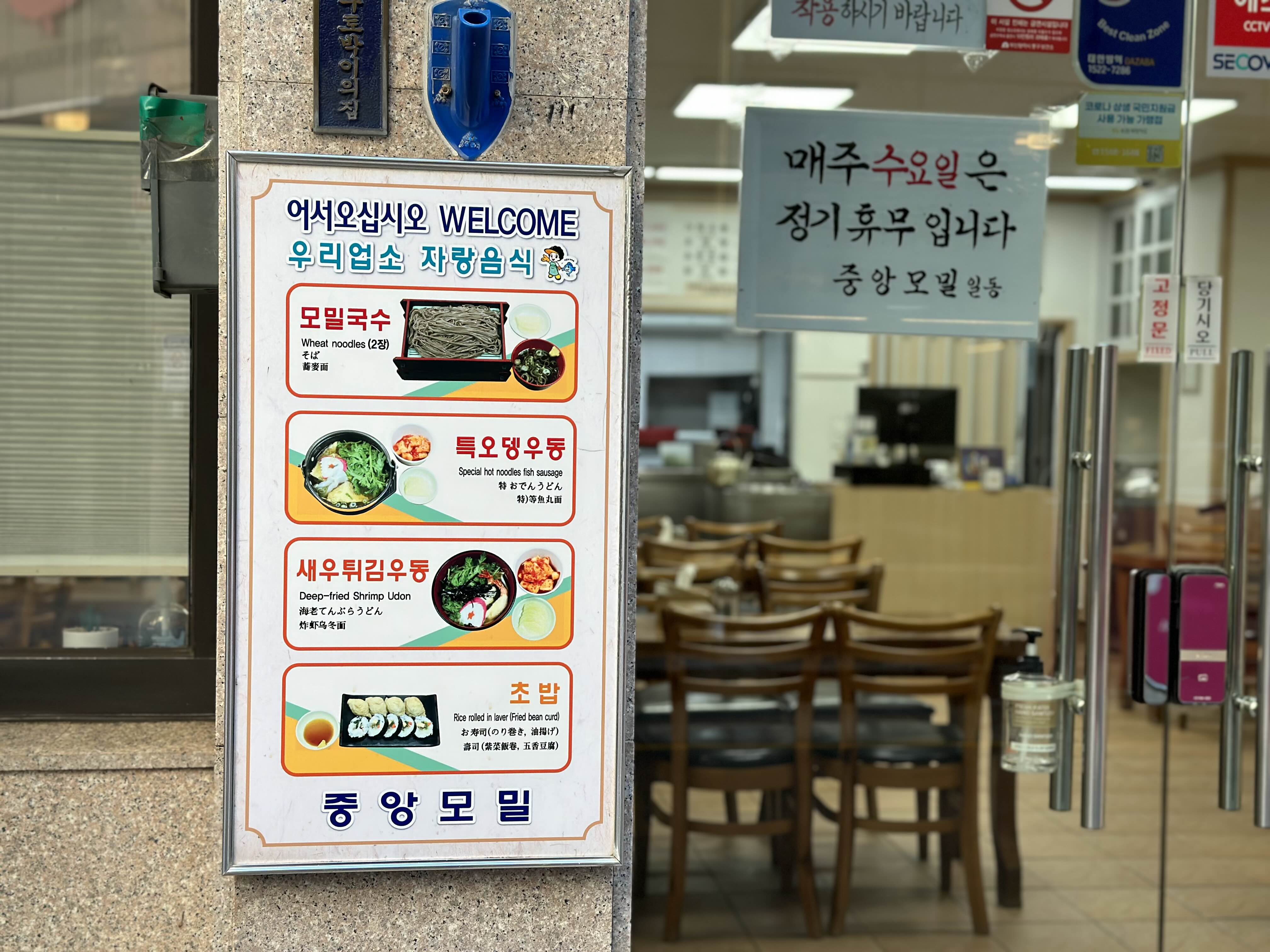 2월의 마지막 금요일 즐거운 시간 보내세요 오늘 소개하고 싶은 것은 부산역 근처 맛집 아이들과 방문하기 좋은 중앙모밀은 메밀우동 등 국수 전문점이다.