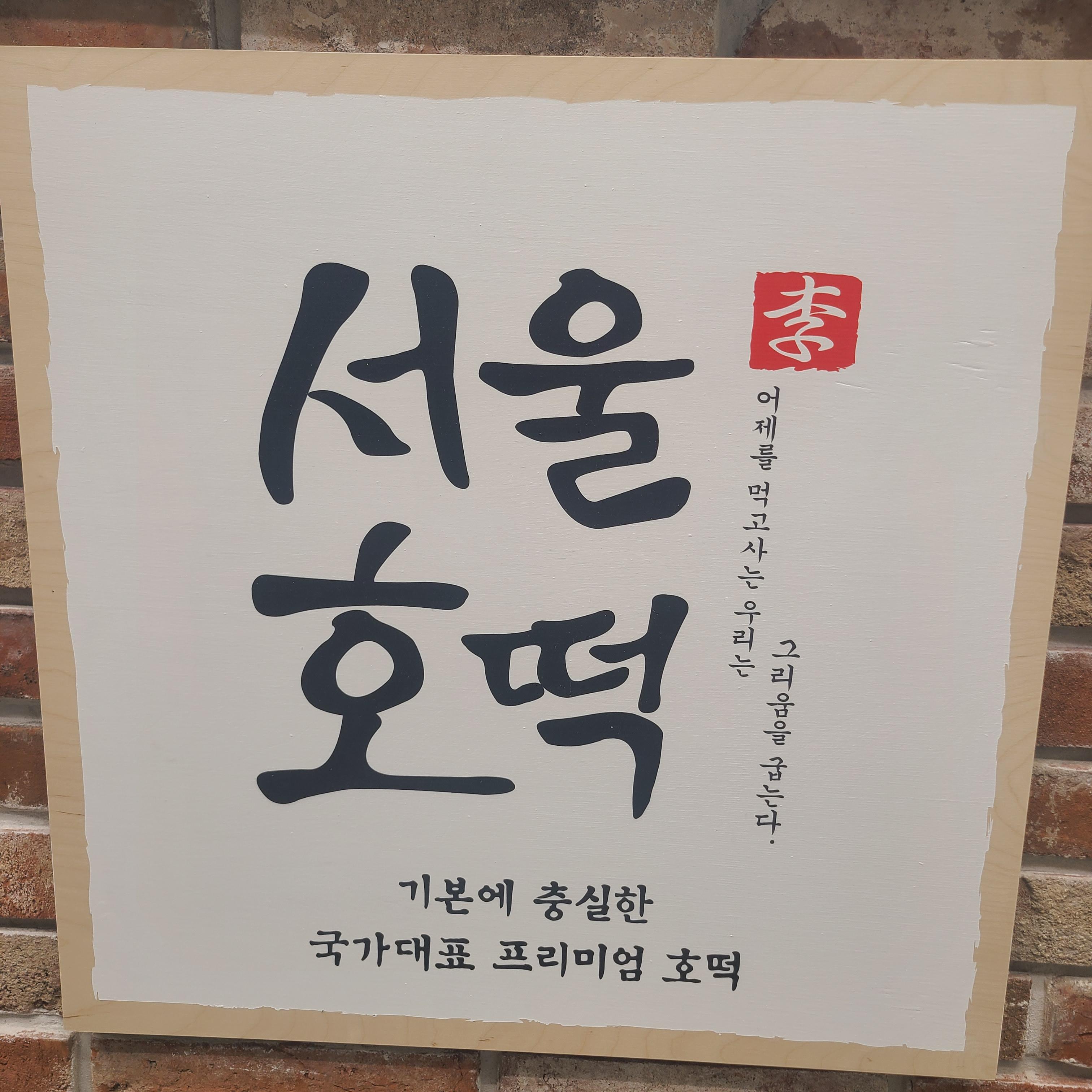 서울호떡아차산 직영점으로 화려하진 않지만 예쁘고 고급스러운 나무간판으로 계피향에 금빛으로 구운 호떡의 이미지가 떠오릅니다.(웃음).