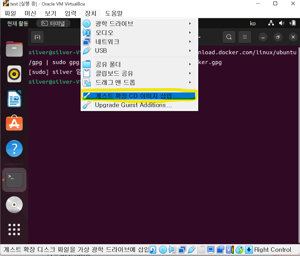 버추얼 박스 터미널을 처음 사용했을 때 복사 붙여넣기가 안되서 짧은 명령어를 직접 작성했는데 터미널에 길고 긴 명령어를 차례대로 입력해야 했습니다. 그렇게 무시하다가 긴 명령어를 보고 복사-붙여넣기 기능을 활성화하기로 했습니다. Virtual Box 내 양방향 (복사 붙여 넣기), (공유 된 폴더), (당겨 놓기) 사용하려면 게스트 추가를 설치해야 합니다.