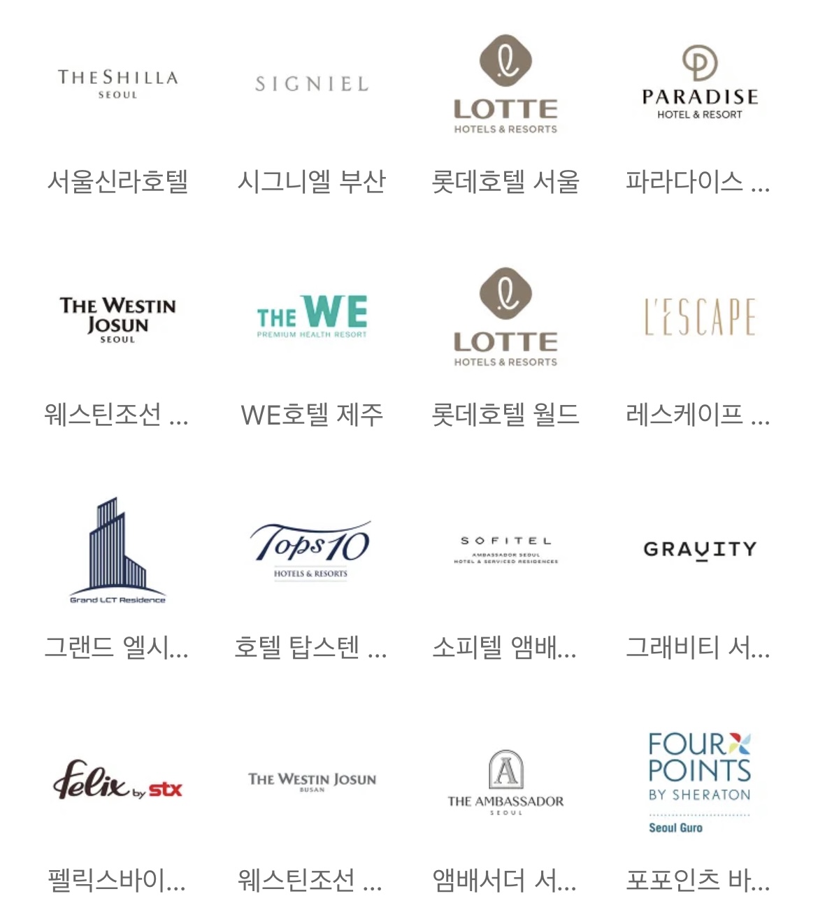 현재 서울신라호텔, 시그니엘호텔, 홀리데이인호텔, 롯데호텔, 서머셋제주 등 4~5성급 호텔은 25개 정도다.