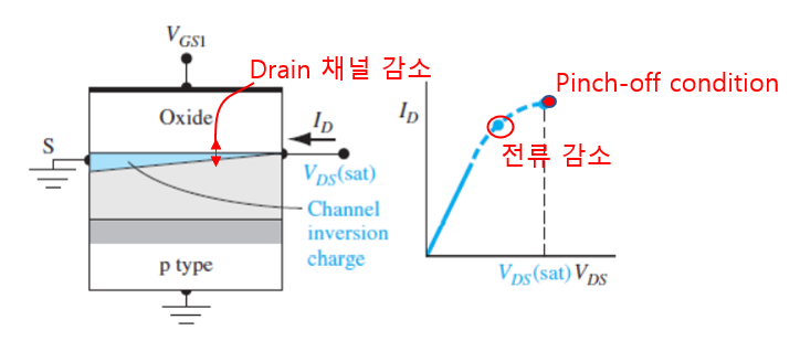 드레인 인터페이스에서 반전 채널이 형성되기 시작하는 지점을 핀치 오프 조건이라고 합니다.