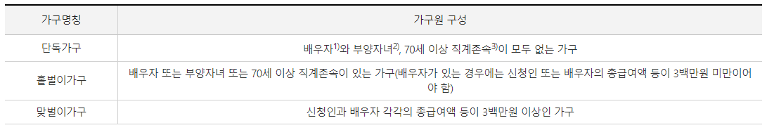 가구 구성원의 재산 총액이 2억원 미만이어야 합니다.